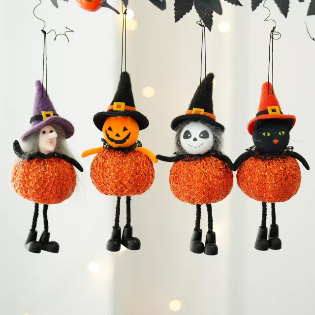 What makes these decorations truly special is their blend of cuteness and spookiness. Unlike typical Halloween décor, the golden thread highlights give them a festive elegance, making them stand out in any scene. They don’t just decorate a space—they set the mood. Create memories, wow your guests, and give your Halloween the magic it deserves. Add these hanging pumpkin witch dolls to your collection today and let your spooky season shine.